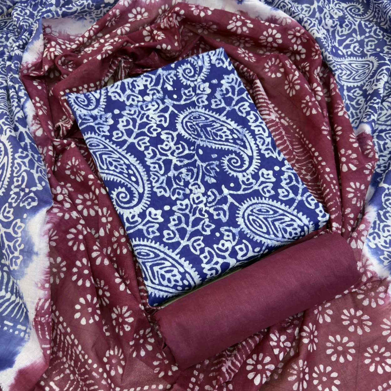 আনস্টিচ প্রিমিয়াম কটন বাটিক থ্রি-পিস জামা + ওড়না + প্যান্ট