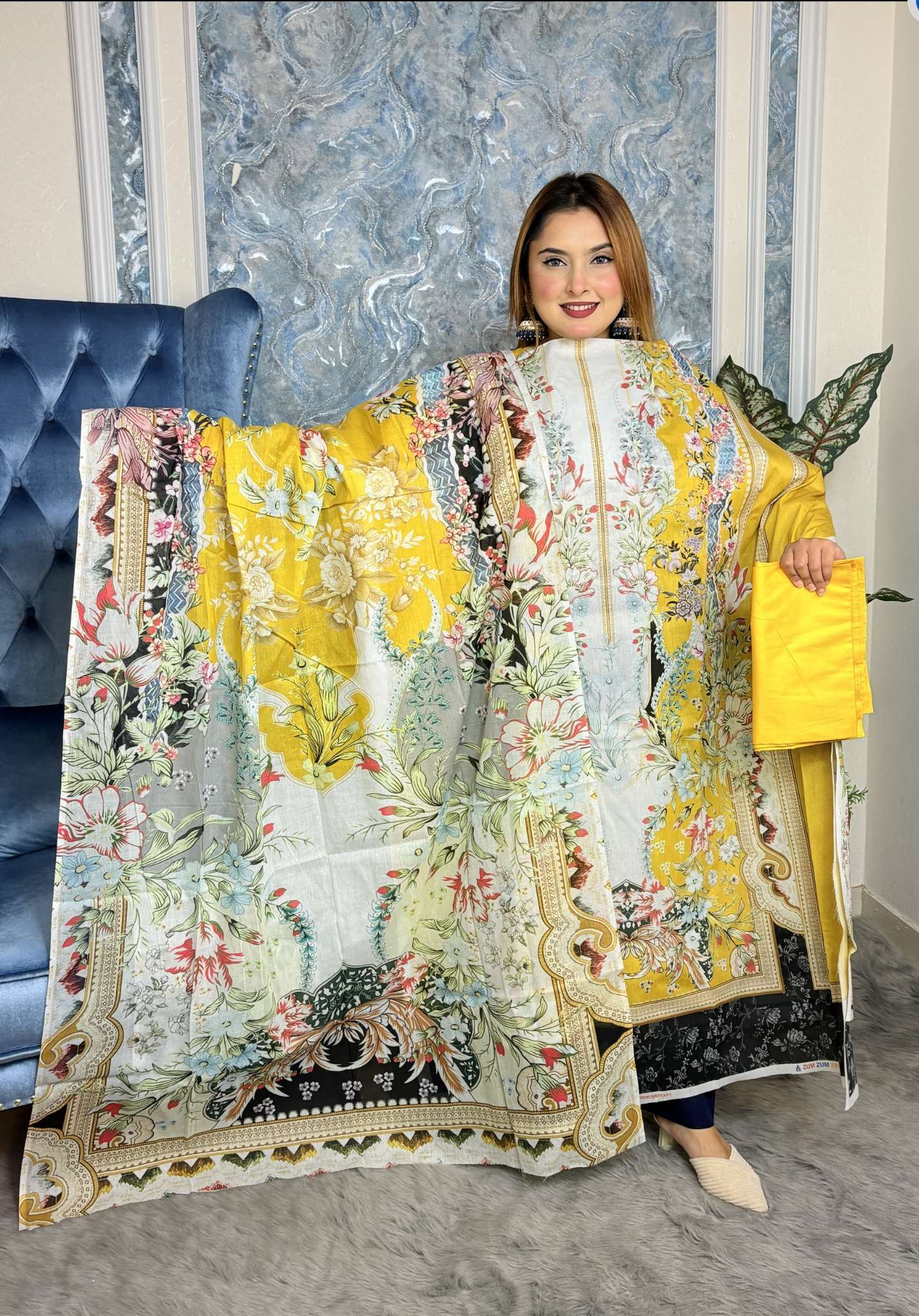 আনস্টিচ প্রিমিয়াম কটন প্রিমিয়াম থ্রি-পিস জামা + ওড়না + প্যান্ট