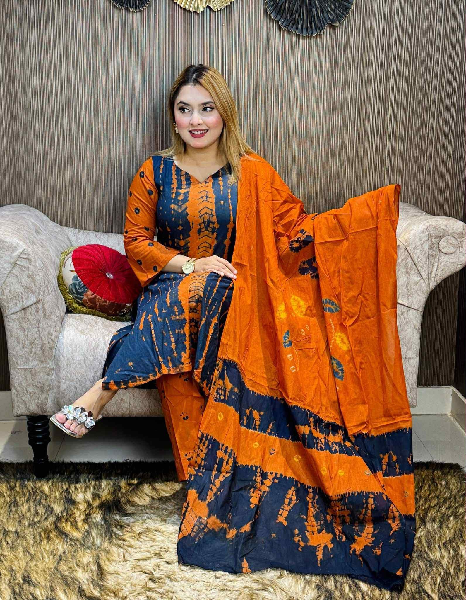 আনস্টিচ প্রিমিয়াম কটন দেবদাস বাটিক থ্রি-পিস জামা + ওড়না + প্যান্ট