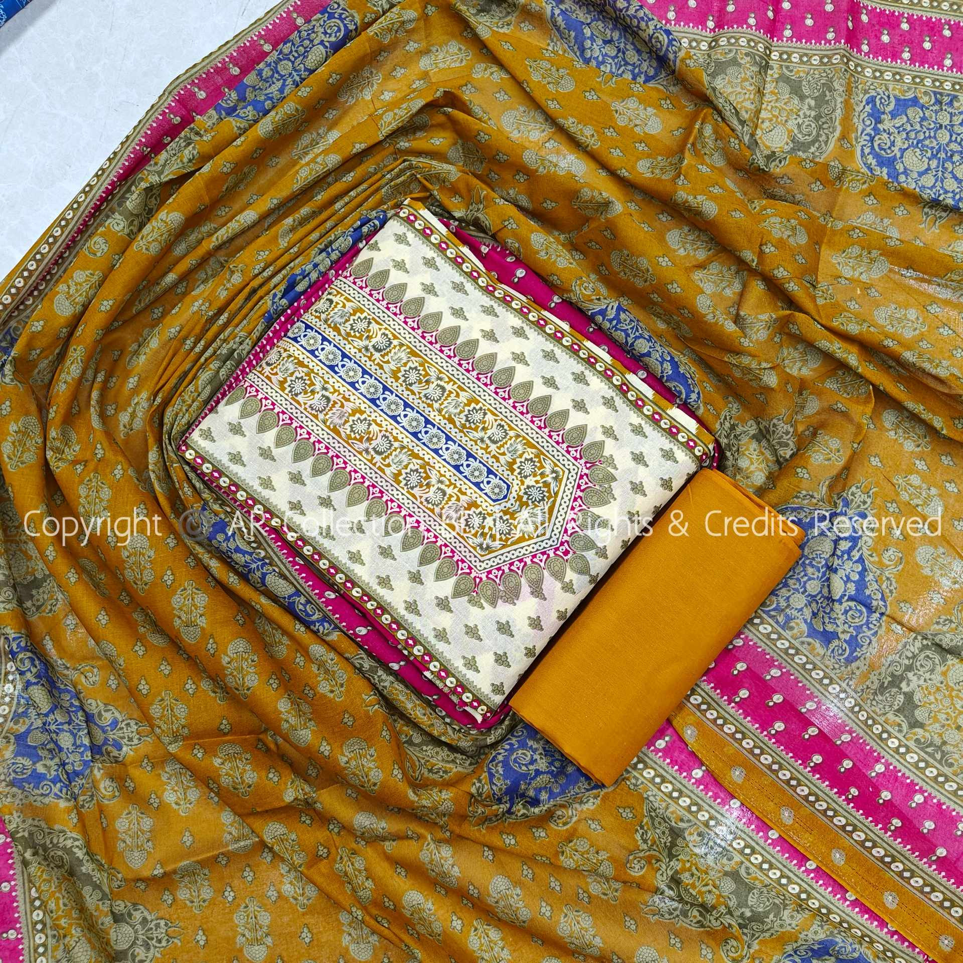 Premium Quality VIP Cotton Unstitched Three Piece for Women